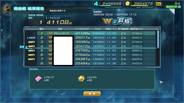 早々に攻撃回数残0にしていたわりにはあまり削られず、2位で終了