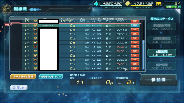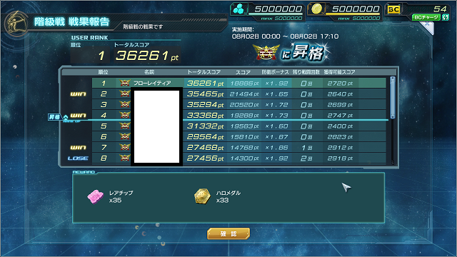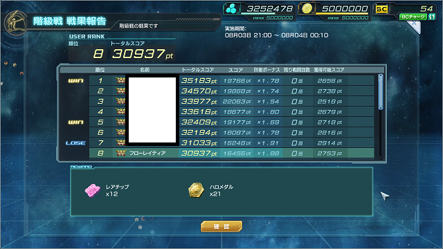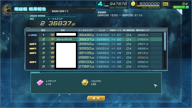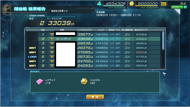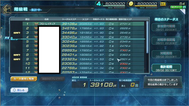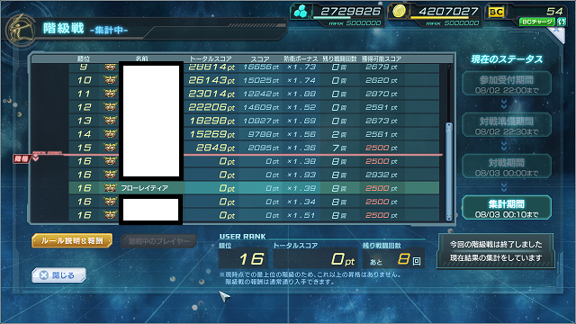 早々に攻撃回数残0にしていたわりにはあまり削られず、2位で終了