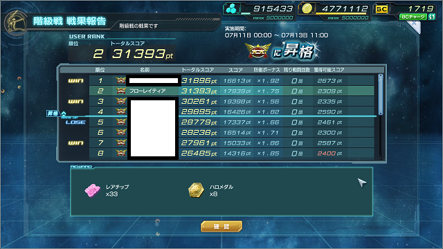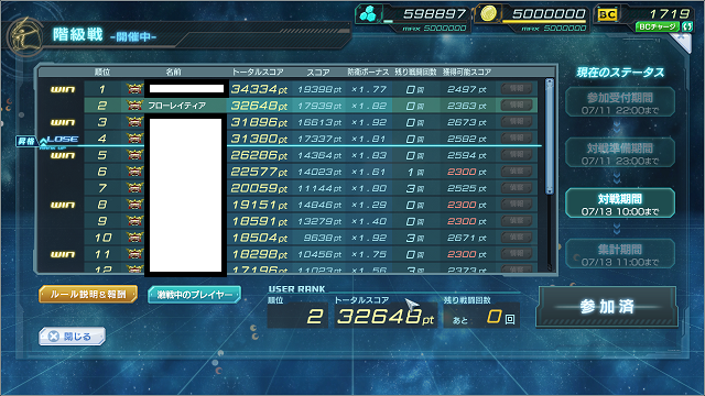 暫定2位ですが攻撃回数残0になったのでどこまで落ちるやら~