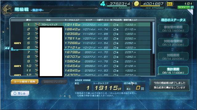 1戦目 win 破壊率 100% 攻撃スコア 2736