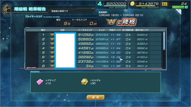 スコアだけ見ると大将の1位より中将でさっき自分が出した