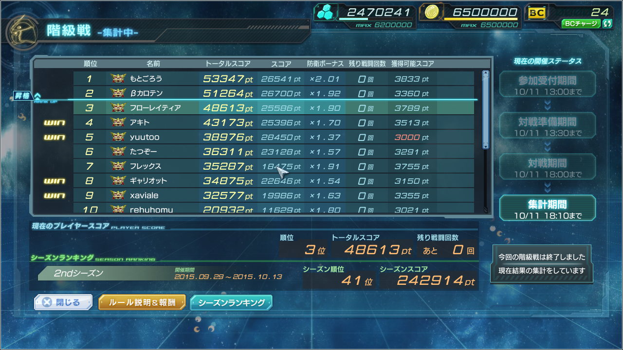 シーズンスコアの関係で大将ではまともに稼げないということで