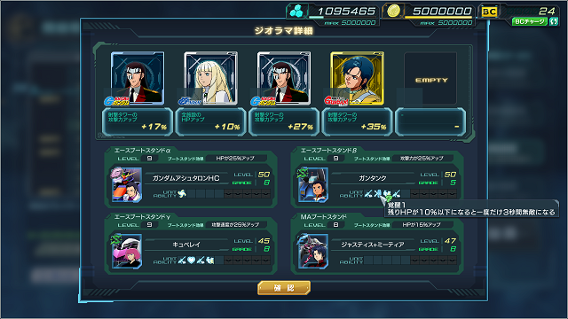 加えてガンタンクのグレード1個上げにhp10%以下で3秒無敵